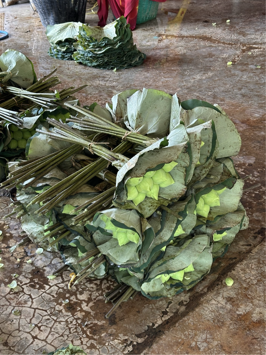 莲叶的种植区需要乘船坐一段时间才能拜访到,下了船便可以看到一些人蹲在地上解剖着莲:一箩筐一箩筐的莲叶,是用来包食物的,应该会送到四月佛百货的某件泰餐厅;一箩筐一箩筐的尚未绽放的花蕾,是用来做贡品的,应该会送到参拜四月佛的某个人手里。走了一会,来到莲叶的种植区,是大片的莲!嗯!然后呢……乡民是要付出努力去让大家多在这里待一会的:喂鱼,划船采莲,喝解暑的莲花茶,这些都必不可少。一个递过鱼饵的手,一个坐在船头的背影,一个递过瓶子的手?一张张局部的照片,但等下,他们的脸是什么样子来着,他们又是谁?好在,有一串连续的动作被留下了,一段延时摄影:她将莲叶茎旋扭了开,短的那端顺着纤维从她的指尖滑了下来;她指了指银丝又指了指自己的衣服,一个微笑,一个足以让嘴角周围光影产生骤变的形状。